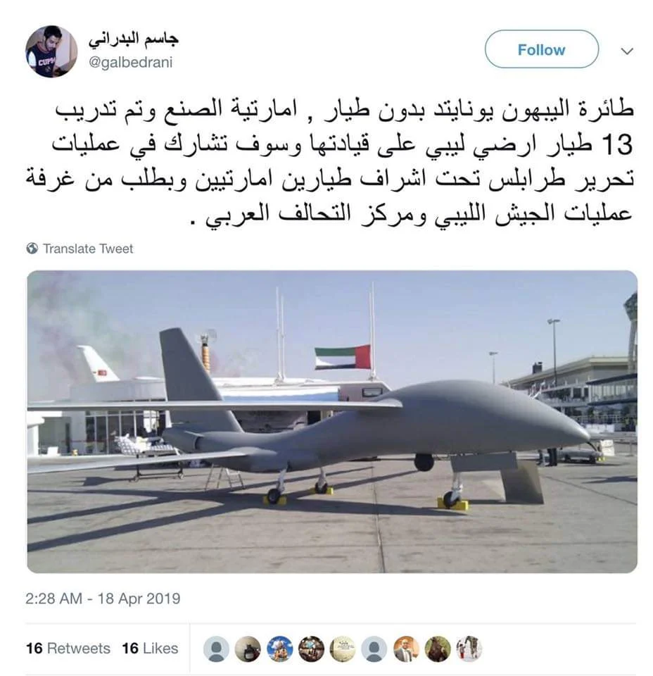 وقال اللواء أحمد المسماري خلال مؤتمر صحفي “إن ضربات جوية صديقة استهدفت قوات معادية في معركة طرابلس”،وأضاف المسماري: “أن مشاركة الطائرات الصديقة تهدف إلى تدمير قوات المليشيات التي تحارب الجيش بمنطقة العزيزية جنوب غرب طرابلس، ضمن العملية العسكرية التي تستمر في أسبوعها الثاني”.ولم يكشف المتحدث عن بلد تلك الطائرات التي ساندت الجيش الليبي في معركة طرابلس، التي تهدف إلى تحرير طرابلس من “قبضة الميليشيات والجماعات المسلحة