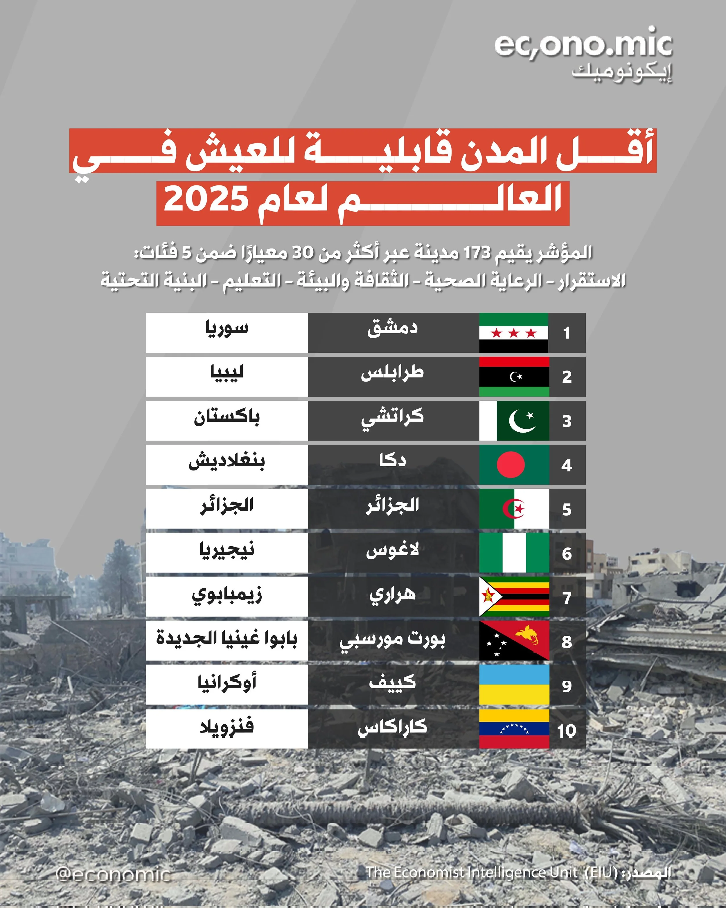 ما هي اقل المدن قابلية للعيش في العالم